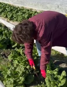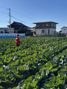サニーレタス、ロメインレタス、キャベツや白菜の収穫をしながら、青空の下で作物に触れると会話も弾み、初めての方や青年たちも楽しそうでした。