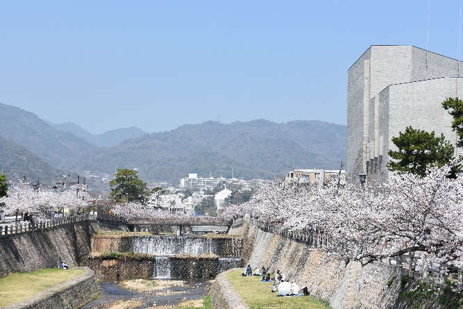 芦屋川:春には芦屋川河畔の桜並木が一斉に花を咲かせ、私達の目を楽しませてくれます。街路樹にも桜の木が使われ、桜のトンネルを車でくぐると花吹雪が舞って桃源郷の様です。